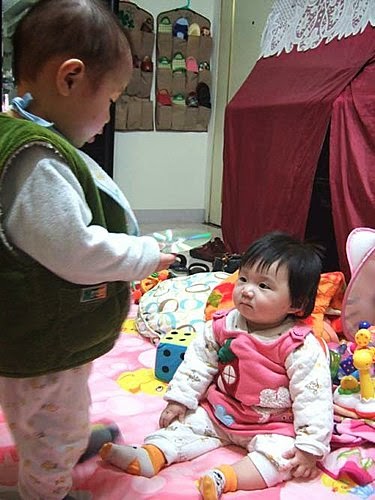 今天天氣很好,君君阿姨帶俊宇哥哥來我家散散歩~~~