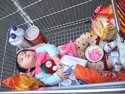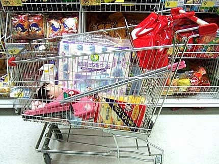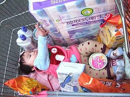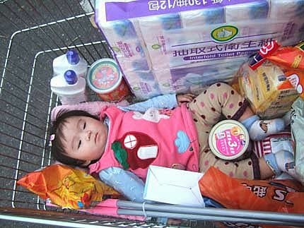 什麼?要回家了~~這麼快..可是,人家還想躺在購物車裡玩啦!!!
