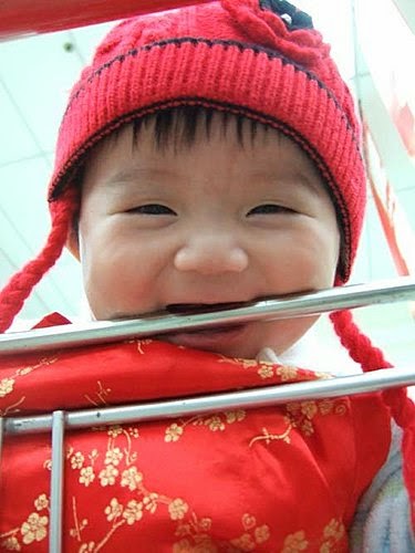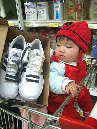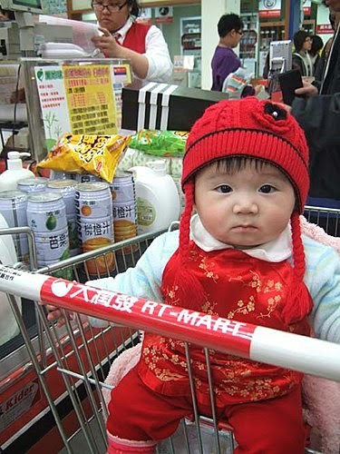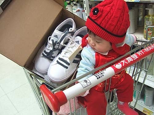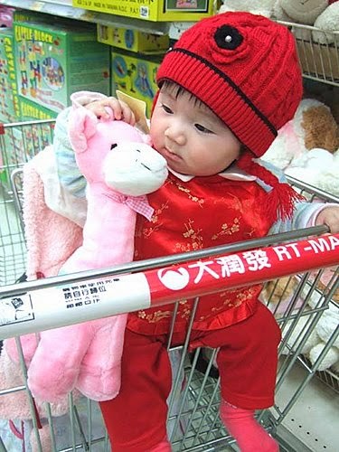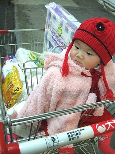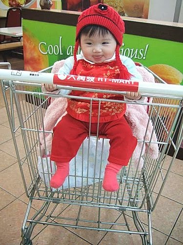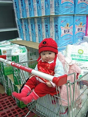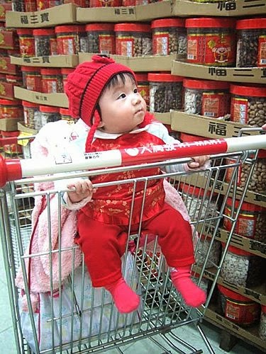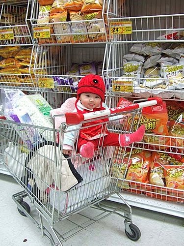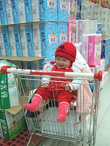 我第一次坐在"購物車"上,好好玩喔~我開心的腳一直踢踢踢~~