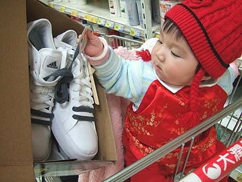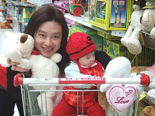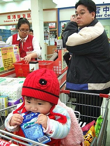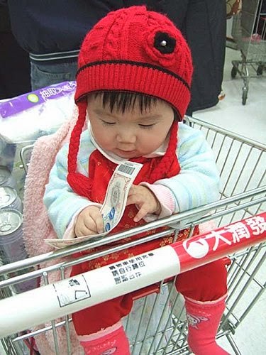 要結帳嚕~用爸比抽獎抽到的"禮卷"付錢錢~~要乖乖排隊喔!