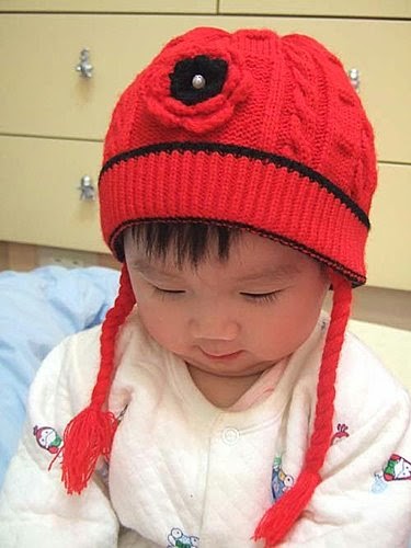 帽帽4:紅色花朵辮子毛線帽 售價:99元 地點:露天拍賣(小晶ㄉ店)