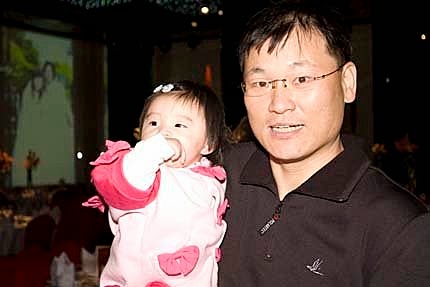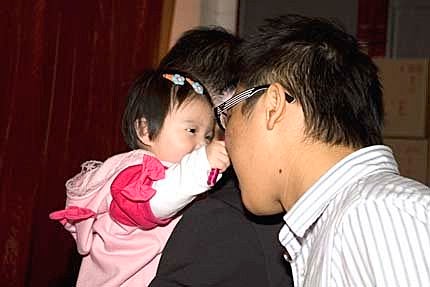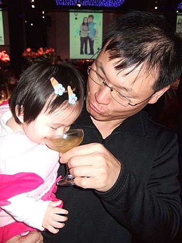 這是另一個叔叔,捏捏你的鼻鼻打招呼!不會吧?建忠叔叔,人家年紀還小小.你就請我喝雞尾酒