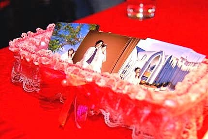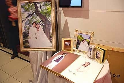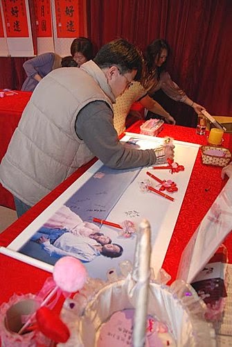 爸比在簽名綢上簽名,媽咪還規定爸比,要簽在媽咪的名字旁邊,媽咪還用愛心框起來!哈哈~~