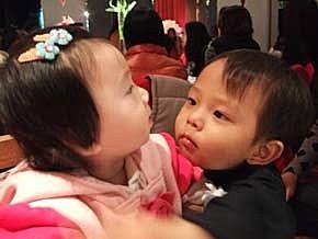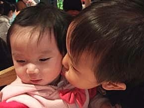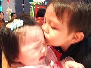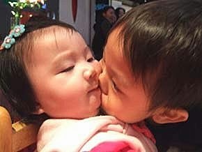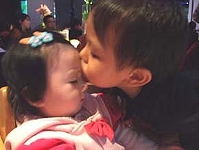 親完人家的臉,又要親人家的額頭~我要告}}訴}}我}}爸比}}啦~嗚....