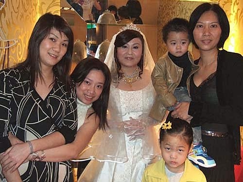 媽咪什麼時候~~才能換我當新娘子呀?花花阿姨跟白阿姨也來跟新娘子合照嚕!