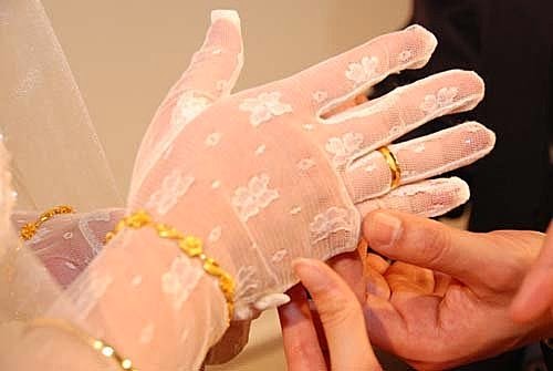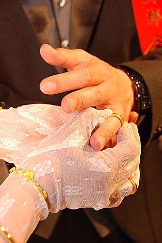 新郎跟新娘交換戒指,就要相守一輩子了喔!