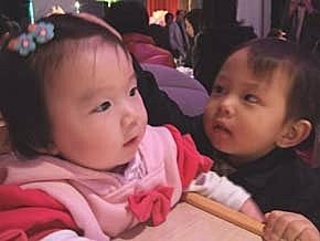 哈囉~~好久不見的"小緯哥哥"變帥帥了呦!哈哈~白阿姨抱我,小哥哥吃醋了~好生氣喔!