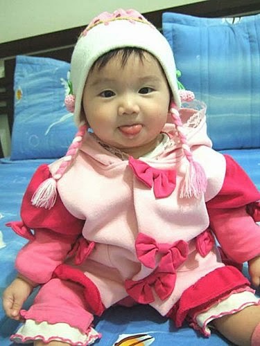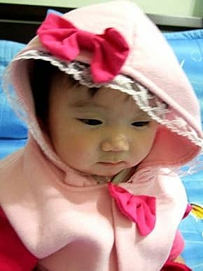 阿嬤最喜歡看我戴"有辮子"的小帽帽,這樣人家會"害羞"啦!!