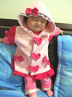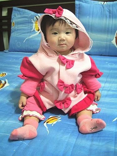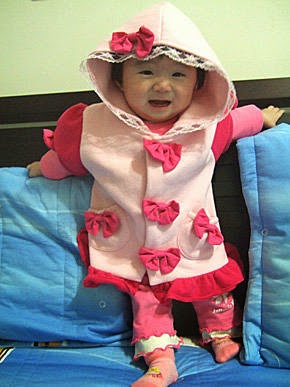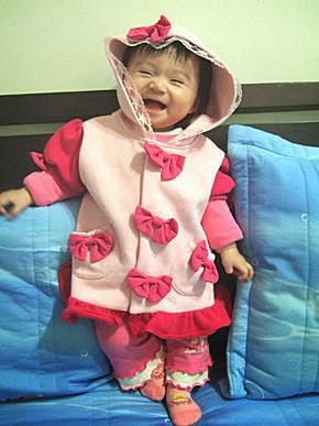 剛開始買的時候,媽咪還考慮了很久,因為衣服上面有好多的蝴蝶結,怕我穿起來變成"阿花"
