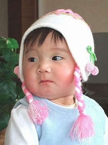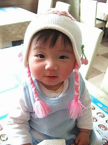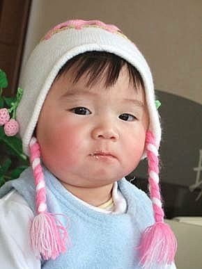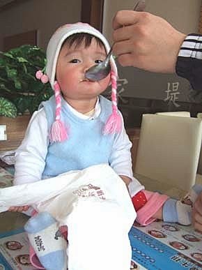 咦~~~我嘴巴怎麼"鼓鼓的"嘴角旁還白白的,哈哈~~被發現了!是爸比餵我吃"豆腐"啦!