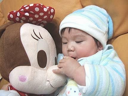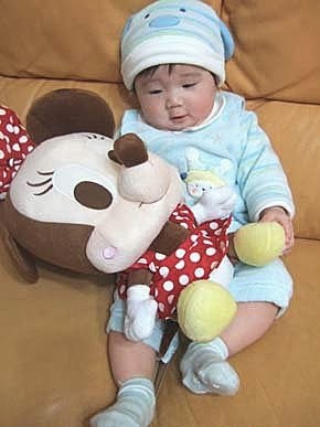 今天回外公家,媽咪不小心在小阿姨的房間裡,看到好可愛的米奇跟米妮寶貝喔!