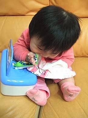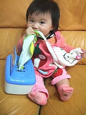 寶貝老是在我換尿布的時候,搶我的溼紙巾,而且一抽到手,直接就是"塞進嘴裡"