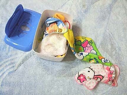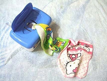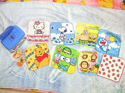 小方巾,一條市價約20元,我有特地篩選一些可愛的圖案!如果不想花錢,可以用舊的"紗布巾"