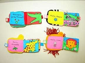 可愛立體動物臉可做床掛的布書套裝,一套四本(斑馬.獅子.鱷魚.長頸鹿)