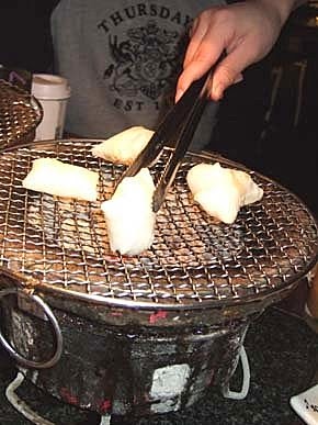 最後的甜點烤年糕,一人限定一片,因為是"進口的"薄薄的一片,烤沒多久...就會膨脹!真的很神奇~