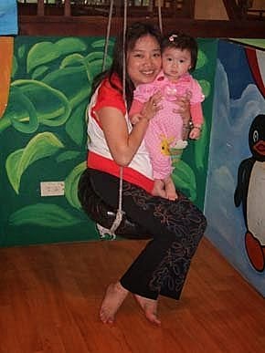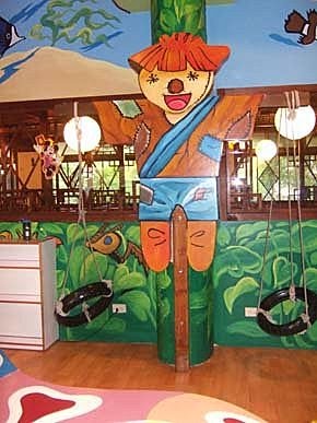 稻草人造型的盪鞦韆,都被玩到"變形"了~可不是....我坐到變形的喔!
