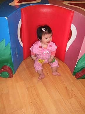 瞧......寶貝一個人坐著可以玩很久呢,避開那些活潑好動的小男生,這可是小女生的天地喔~