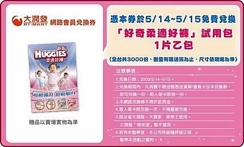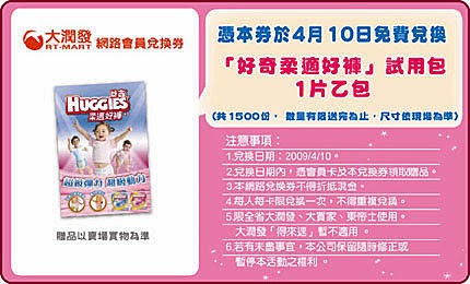 4/10 當天列印兌換券+會員卡免費兌換好奇柔適好褲試用包一份(一片)