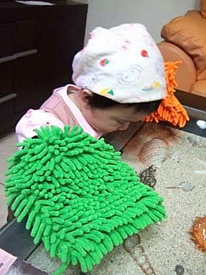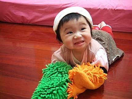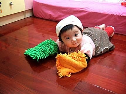 我擦~~~我擦~~~我擦擦擦~~~看...我把地板擦的"亮晶晶"了耶~