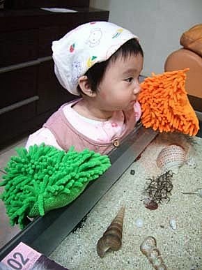 唔........我沒有看到哪裡"髒髒"呀!只有看到好多的貝殼喔~爸比~~~快來幫我啦!
