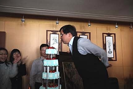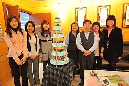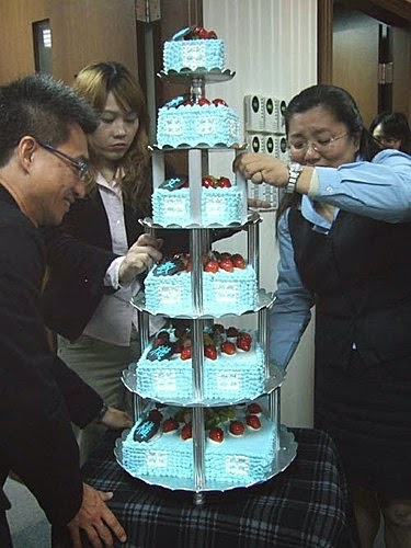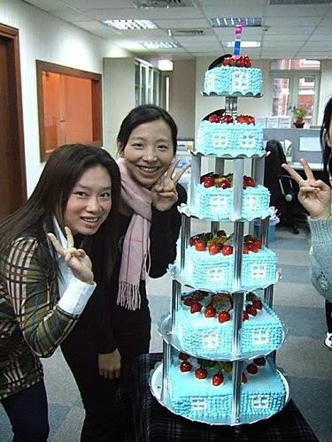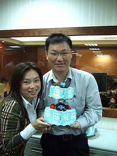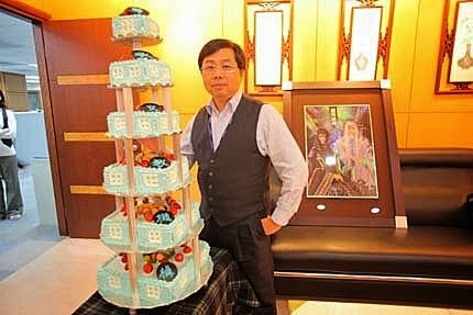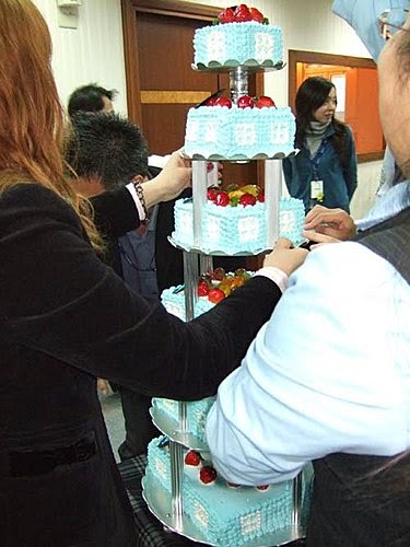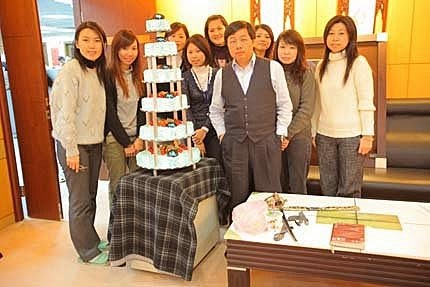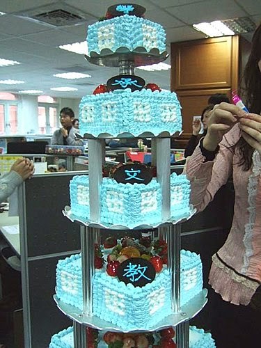 特助..特別訂做的六層大蛋糕,原本要設計成"學承大樓"的模樣~是Boss的目標!!