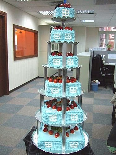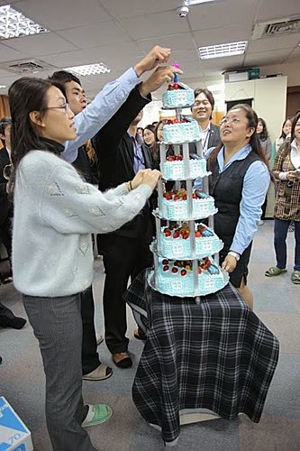 終於組好了~~~浩浩蕩蕩的推到Boss的辦公室,非常不穩的蛋糕架!