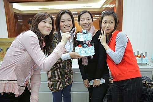 企劃部門(美女)跟Boss合影 財務部門(娘子軍團)跟Boss合影
