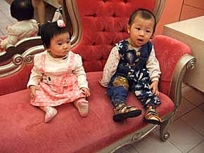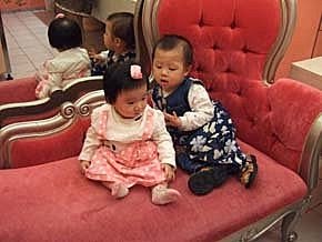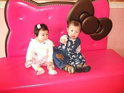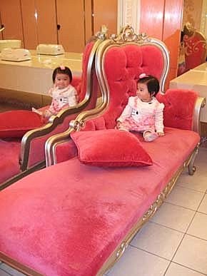 這張Kitty椅子是"候客區"我跟俊宇哥哥在等媽咪,跟櫃台阿姨確認入坐的時間~