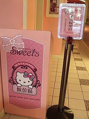 這裡是走廊,連等候區的牌子,都有Kitty的圖案喔!