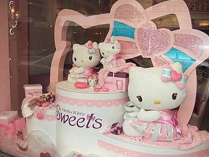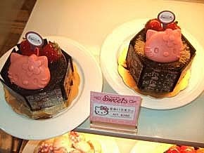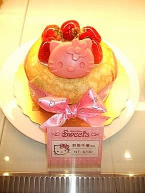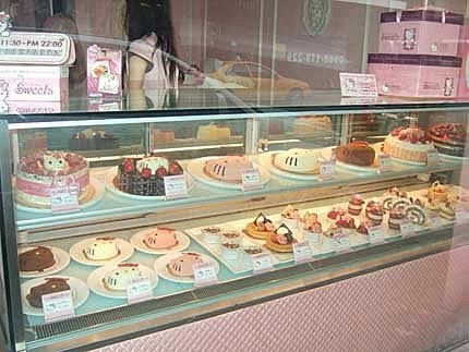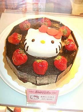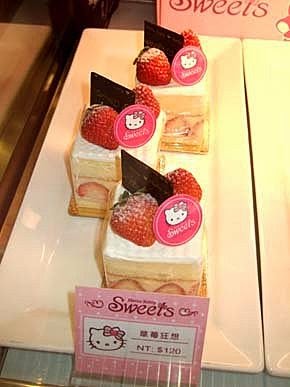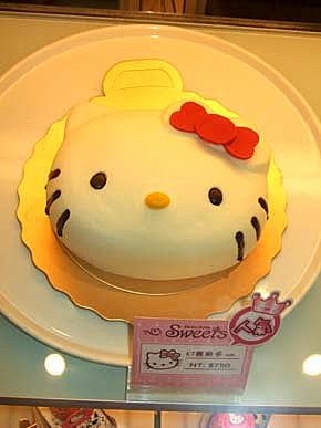 哇~~櫥窗裡有好多Kitty造型的蛋糕呦!!!