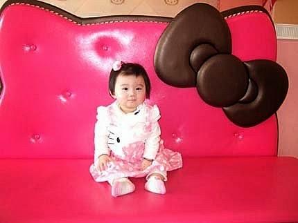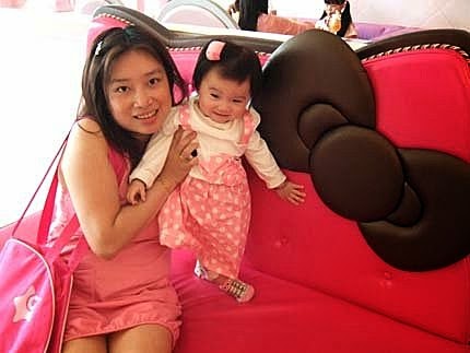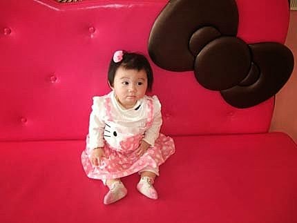 媽咪說:這張Kitty椅子太可愛了~一定要跟它合照一下!