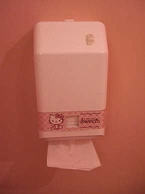 廁所裡的衛生紙,鏡子跟擦手紙....通通是喵喵的圖案~