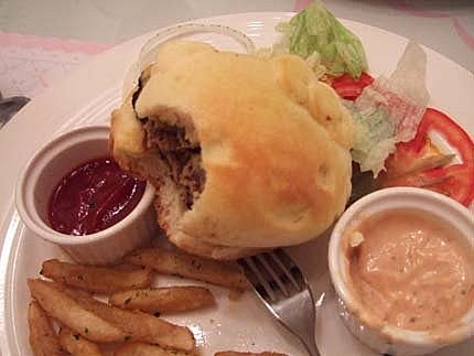 Kitty漢堡套餐$450元(服務費另計),有牛肉.豬肉.雞肉.口味,媽咪點牛肉的,有點太鹹了~