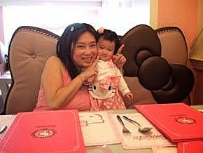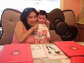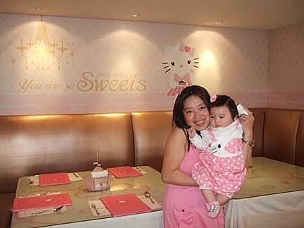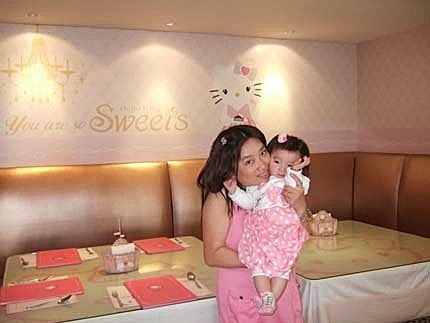 媽咪選了一間"Hello Kitty "的餐廳,因為~君君阿姨好喜歡Hello Kitty 喔!
