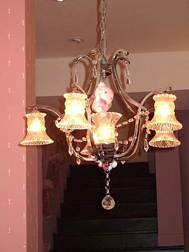 連吊燈上面,都有掛著喵喵的玩偶呦~~