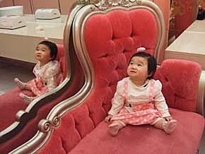 我好喜歡這張大沙發~還有這一片大鏡子!我最愛照鏡子了~