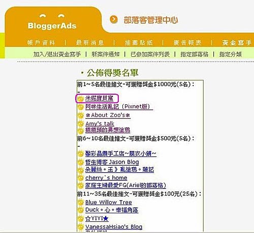 第一次參加 用BloggerAds 替自已加薪的文章~就得獎了~
