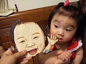 蛋糕製作前的線稿,跟我很像嗎?媽咪提供的照片是不是跟蛋糕上畫的很像呢?