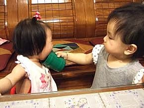 云云:婷婷姐姐~你看!我有兩顆小牙牙ㄟ 婷婷:那有什麼稀罕!我也有~