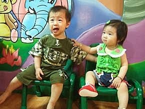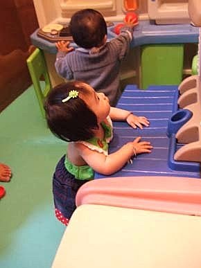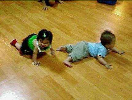 爬爬樂~快來比賽誰爬的快喲(照片來自於"包子a媽")