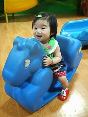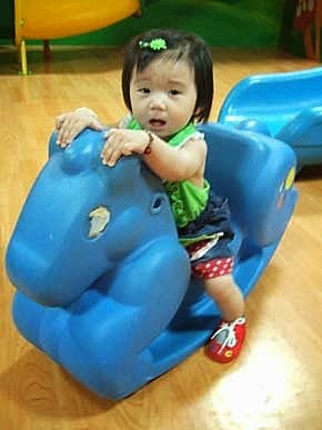 第一次坐搖搖...俊宇哥哥快來陪我玩啦!!
