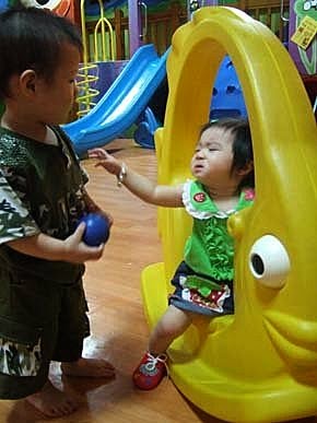 我跟小小哥哥一起玩家家酒,唔...怎麼都沒有東西可以玩呀!