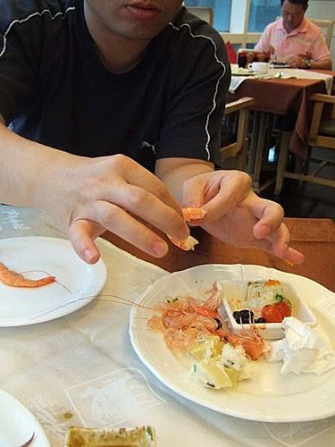 剝蝦..剝蝦...老公剝給我吃的蝦,好捨不得吃哩~~