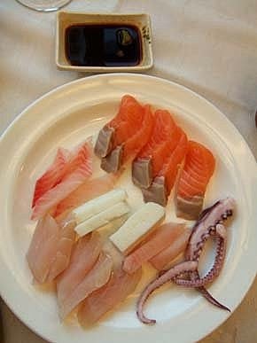 喔~~~~賣尬!!生魚片耶~~隨意吃的生魚片...很新鮮!