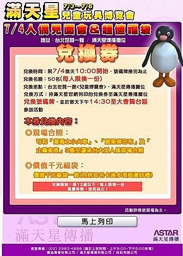 (1)6月11日起至台北縣市全家購買親子預售票,可享一 大一小120元,限省230元!