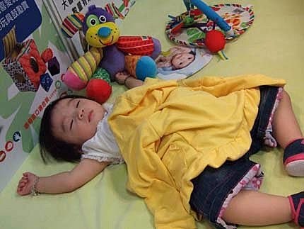 逛累累了~我在育嬰室裡打盹,哥哥一邊陪我,一邊玩玩具!