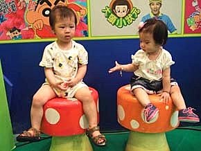 我不知道這兩個玩偶是什麼?媽咪也不知道?我想..等我長大就會知道了吧!