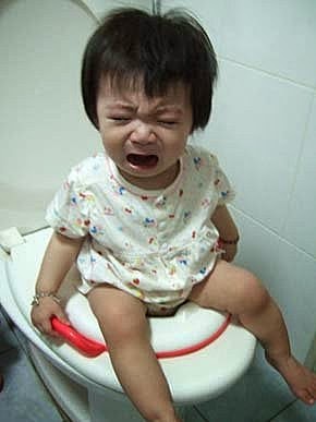 媽咪~人家包著布布,怎麼坐著馬桶便便啦~~