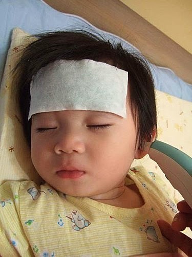 媽咪說:我發燒了~幫我貼了"退熱貼"還要多喝水水,才能趕快趕走"壞病毒"