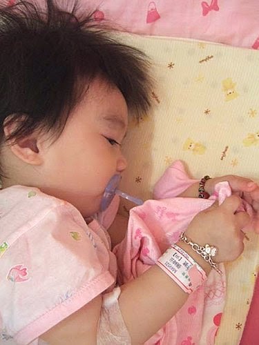 媽咪好心疼我..睡覺的時候,一直牽著我的手~陪伴著我!還不斷的幫我量體溫!